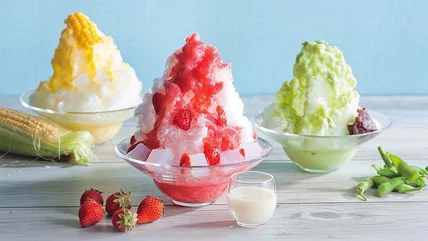 Shaved ice is especially big in Southeast Asia. In Korea, for instance, you might encounter it as bingsu; milk-based rather than water-based, bingsu is served as a pillowy mountain of soft shavings topped with sweetened condensed milk, fresh fruit, sweetened red beans, and other goodies. Japan's shaved ice, called kakigori, dates back a millennium or so. Originally, scrapings were taken from huge blocks of ice before being doused in syrup. This was something that, before the advent of refrigeration, was generally enjoyed only by the wealthy.