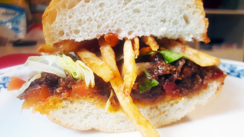 The "Masala Steak" Gatsby, featuring strips of beef slowly stewed with browned onions in a curry sauce, is among Cape Town's favorite street foods. Those fried potatoes, though, steamed in a container briefly after frying to give them their signature floppy "slap" texture, are the defining feature of a Gatsby.