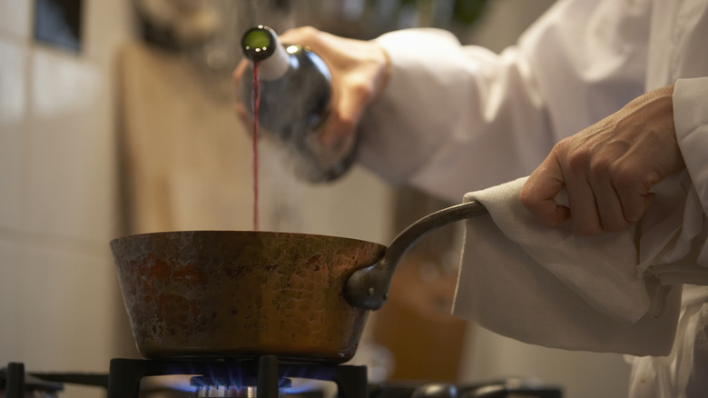So, if the sniff test determines that your wine, did in fact, turn to vinegar, should you just toss it? Not necessarily. Once your wine has crossed the vinegar threshold, there's actually a lot that you can do with it. Yes, you could use it to degunk your appliances — just don't expect it to clean your entire kitchen — but you can also cook with it. Trust us, while you may not want to pour yourself a glass to drink, homemade vinegar in certain recipes can actually give the dishes a delicious flavor boost.