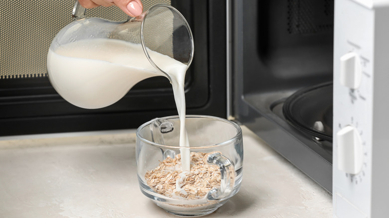 Not that it's ever happened to us or anything, but a volcanic eruption of oatmeal in the microwave is a great way to ruin the feel-good morning mood. If you know, you know. Even so, there's a simple enough way to remedy the situation, and that's to simply place your oatmeal in a bigger (microwave-safe) bowl.
