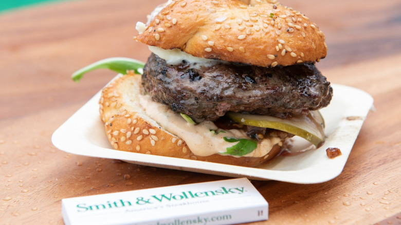 But have no fear — the steakhouse chain does still offer a burger: the Wagyu Smashburger, which has three Wagyu beef patties, caramelized onions, cheddar cheese, dill pickles, and Thousand Island dressing, served on a toasted brioche bun. This smashburger was originally added to Morton's menu for National Hamburger Month in May of 2024, but it was so popular the chain decided to bring it back.