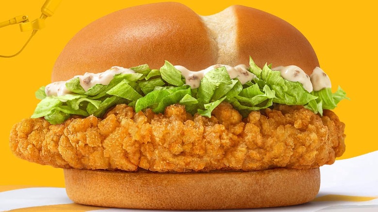 In 2023, McDonald's made a big announcement: the Crispy Chicken Sandwich was no more. (At least, in name). Instead, the sandwich — which was initially launched in 2021 as McDonald's attempt at competing against rivals such as Chick-fil-A and Popeyes in the chicken sandwich wars — was renamed the McCrispy, a name it already held in several international markets. Just like before, the sandwich took a crispy chicken fillet with pickles and encased it in a toasted, buttered potato bun. That's still the case today, with the sandwich having ballooned into a mini chicken empire that now officially rivals that of McDonald's beef.