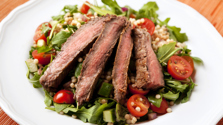 If you're looking for perfection when preparing your own steaks, don't be afraid to use a meat thermometer, which will tell you exactly when your steak is done. According to Mendros, flat iron steaks are considered medium-rare when the meat reaches 130 to 135 degrees Fahrenheit, and medium when they hit 140 to 145 degrees. And don't forget to let your meat rest properly before slicing.