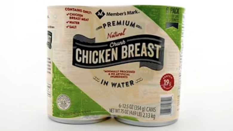 The main appeal of canned chicken is that it comes pre-cooked, which means that you can eat it straight out of the can. Canned poultry can also save time and effort in meal preparation, making a quick and easy addition to a variety of dishes, including soups, salads, pastas, and sandwiches. However, even the convenience of canned chicken isn't always risk free. In March 2018, Minnesota-based Tony Downs Food was forced to issue a significant recall involving more than 96,000 pounds of canned chicken sold at Sam's Club stores nationwide after two customers found hard plastic in the cans.