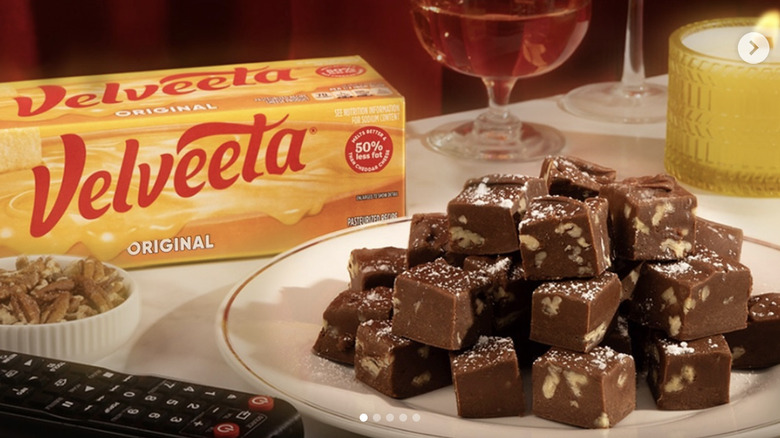 Back in the day, Velveeta was the star ingredient in Velveeta fudge. We can't be sure exactly when this treat was invented, but it's reflective of the mid-20th-century American enthusiasm for processed foods. The fudge in question combines Velveeta cheese with butter, sugar, cocoa powder, vanilla extract, and nuts. According to Reddit users, the flavor of Velveeta is so subtle in the recipe that it's hardly detectable, as highlighted by one of the platform's users, who wrote, "My grandpa used to make this. He acted like he was going to tell you a deep dark family secret and then he'd lean over and say, 'It's Velveeta!' and then pretend he was some sort of master chef. I personally think it's horrible."