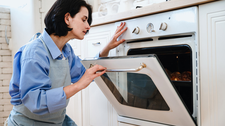 While using older oven types is pretty self-explanatory — you simply set the temperature and wait — newer models often come with a range of features that can be confusing for anyone inexperienced with the model. For instance, preheat settings bring the oven to the correct temperature for your recipe. Bake functions use top and bottom heat elements and are perfect for preparing cakes and casseroles. The roast setting uses higher temperatures from both the top and bottom elements to crisp up meats and poultry. Meanwhile, broil mode uses high heat from the appliance's top element to brown, caramelize, or char dishes such as steaks. Many modern ovens may also come with a plethora of other settings, including air fry, keep warm, or frozen bake.