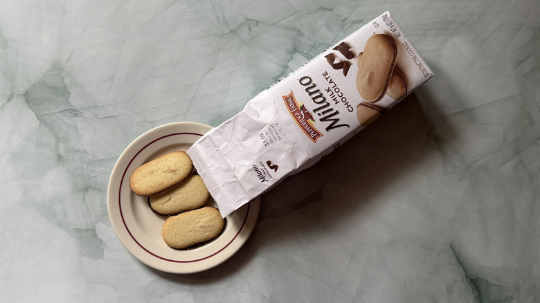 In 1968, Pepperidge Farm introduced the first flavor variation with Mint joining the lineup. In the decades since, over 20 flavors have been offered up in those distinctive white bags, under its fashionable Italian name. Milano cookies have been named dropped in a song by RZA, and offered up on such shows as "Seinfeld," "Scrubs," "Lucifer," "Family Guy," and the series finale of "Frasier."