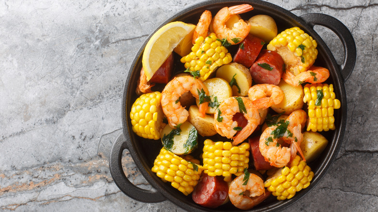 If you plan on being out of your home all day and want to return to a pot of perfectly prepared corn on the cob, making it in a slow cooker is the technique for you. Using a slow cooker to cook your corn is also ideal during the hottest days of summer, since the appliance won't heat up your kitchen. It'll also save you time on a busy day since you won't need to worry about draining the corn when it's done. Another convenient aspect of this hands-off approach is that you can customize your corn by adding specific ingredients, such as garlic, onions, or seasoning blends, and the flavor will slowly infuse the kernels.