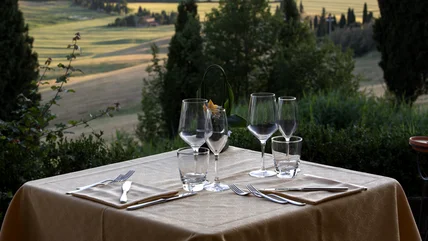 Napa Valley in Northern California is one of the world's most renowned wine regions, known for its vineyard-dotted landscapes. Auberge du Soleil takes full advantage of this natural beauty with its expansive windows and outdoor terrace. A part of the Auberge du Soleil resort, the restaurant is perched on a hillside, overlooking the picturesque valley peppered with charming wine estates framed by the Mayacamas Mountains.