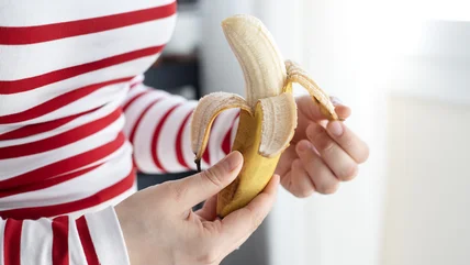 "To keep bananas fresh and fabulous, when possible, use a banana hanger or hook, which will help prevent bruising and improve air circulation. Bananas do not like the cold, and the skin can turn a tinge of gray when exposed, so keep them at room temperature," says Moless. If you don't own a banana hook, adhesive under-cabinet banana hooks are a great, easy-to-install option. Another thing to keep in mind is that bananas ripen while sitting in your home. "The stems can release ethylene gas, which accelerates ripening, so keeping the stems wrapped in foil or plastic will preserve them for longer." You can also invest in NANA HATS, the adorable banana freshness preservers that add a bit of personality to your produce.