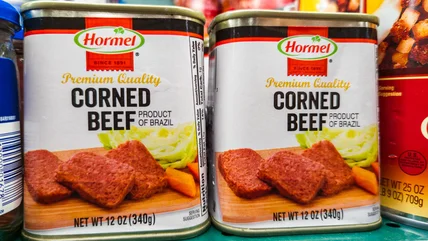 Chef Corey Small pointed to two methods that render fat from canned corned beef more effectively than heating an unopened can in simmering water: pan-rendering and oven-rendering. Both methods spread the corned beef out on a flatter surface and use heat to draw the fat from the meat. Pan-rendering uses a skillet to heat the corned beef over medium-low until the fat becomes liquid. If you're using the oven, spread corned beef on a cookie sheet and bake it for 10 to 15 minutes at 375 degrees Fahrenheit. In both cases, remove the fat as it pools with a spoon or paper towel, or drain it away from the meat.