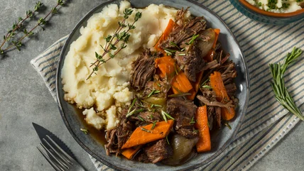 If you're a purist, you can simply season the meat and veggies with salt and pepper. But there are a wide variety of seasonings, spices, and herbs that will bring out the best in your roast. You can get creative by making your own customized mix of favorite flavors, or opt for one of the many seasoning blends already available. Some seasonings that work especially well with pot roast include garlic or onion powder, earthy thyme and rosemary, and parsley flakes as a vibrant touch. If you want your roast to have a slightly smoky flavor, add a bit of smoked paprika as well. If you love spicy food, sprinkle on some cayenne pepper or red chili flakes. And if you're craving tartness, try pepperoncinis, giardiniera or pickles in pot roast.