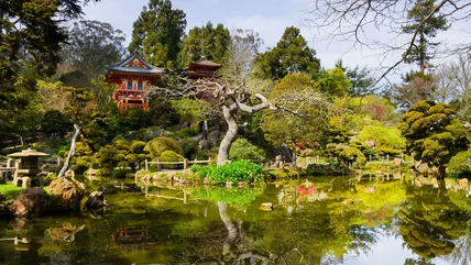 Nestled in the heart of Golden Gate Park stands a large Japanese wall in brown and beige with a massive wooden double-door gate. Within this wall is something that feels almost like it doesn't belong in the heart of a bustling city, given the natural beauty, tranquility, and Asian history it contains. This seeming Eden is the San Francisco Japanese Tea Garden, the oldest of its kind in the entire United States, and one anyone can visit for a much-needed dose of peace and quiet.