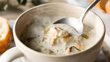 Boursin currently offers a variety of different cheese flavors, including garlic and fine herbs, shallot and chive, cracked black pepper, and hot honey and roasted garlic. Ed McCormick considers the first one to be the most versatile — it would add spectacular depth to our cream of mushroom soup, but he also recommends it with soups that feature cauliflower, chicken, potatoes, and leeks. (The two last-named ingredients are integral to vichyssoise, the classiest cold potato soup.) He prefers the shallot and chive for seafood and vegetable soups, and suggests using the cracked black pepper in soups made with beef, lentils, or root vegetables.