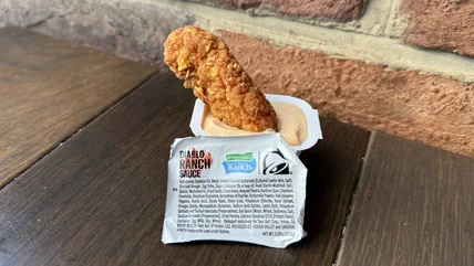 Taco Bell released a Crispy Chicken Sandwich Taco in 2021, and its crunchy success led to an innovation: Crispy Chicken Nuggets. These were Taco Bell's first venture into the world of chicken nuggets, which were tested in Houston and Minneapolis markets through 2023. By the end of 2024, these nuggets made their nationwide debut, followed by an encore in April of 2025, and then the introduction of Taco Bell's crispy tender strips that summer. The nugs came with three dippable sauces – Hidden Valley Fire Ranch Sauce, Bell Sauce, and Jalapeño Honey Mustard Sauce.