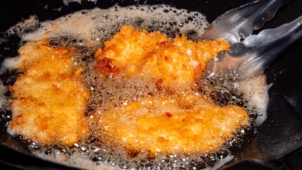 When frying chicken, you run the risk of affecting the flavor if the oil burns. There can also be health concerns, Alba warns. "Burnt oil can produce a compound known as acrolein that is unhealthy in high quantities, leaving your chicken with a chemical taste," he says. With all this in mind, it may be better to stick to the refined options.