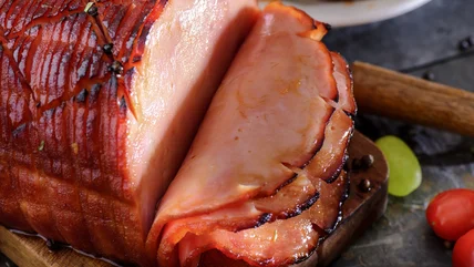 Many pre-cooked hams include a glazing packet with purchase, meaning you're all set to cover, bake, and glaze without any additional ingredients (skip the cloves for studding a ham unless you're showing off how bougie the protein can be). Still, those with higher flavor aspirations may be inclined to make a quick glaze from scratch. The key is to balance the savory, salty nature of ham with complementary ingredients, like a blend of tangy mustard and a sweet, fruity jam. Brown sugar is also commonly used as a sweet element, along with various herbs, and you can't go wrong with including oaky notes from some of your favorite spirits, such as bourbon.