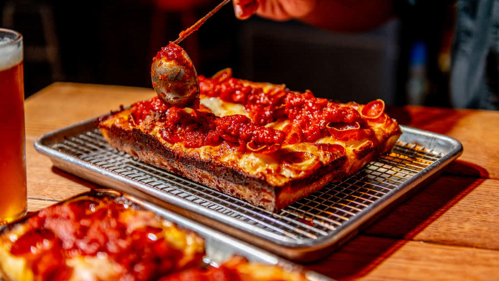 Detroit pizza has come quite a way, and that's a gift for all. This American offshoot of Sicilian-style has become very popular, spawning versions at different chains like Little Caesars and Jet's (Turbo Crust for life!). This is a square-cut pizza with a fluffy dough, baked in a specific steel pan, with cheese (brick cheese) pushed all the way to the edge. The sauce is baked on top of the cheese in big fat stripes. During the baking process, the cheese melts between the crust and the pan, creating a caramelized crunchy exterior that is easily the best bite of the slice. Just a hint: Fight for the corner slices. They have double the cheese edges.