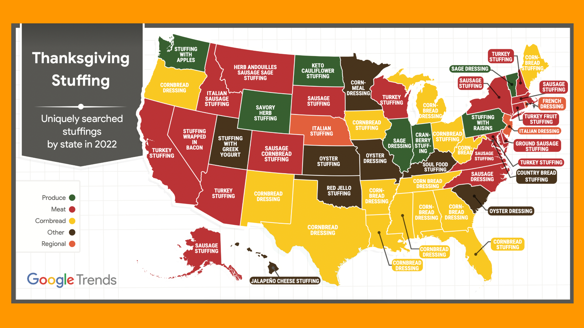 According to Google Trends, there are more types of Thanksgiving stuffing than we thought possible.
