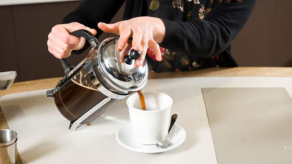 A French press is "incredible," says Denton, partially because it's the most cost effective. No need to buy a kettle, a grinder, or filters. Denton recommends steering away from very finely ground coffee beans when using a French press because the metal filter will end up creating a sort of sludge when you press down. Instead, opt for a more coarse grind when using a French press.