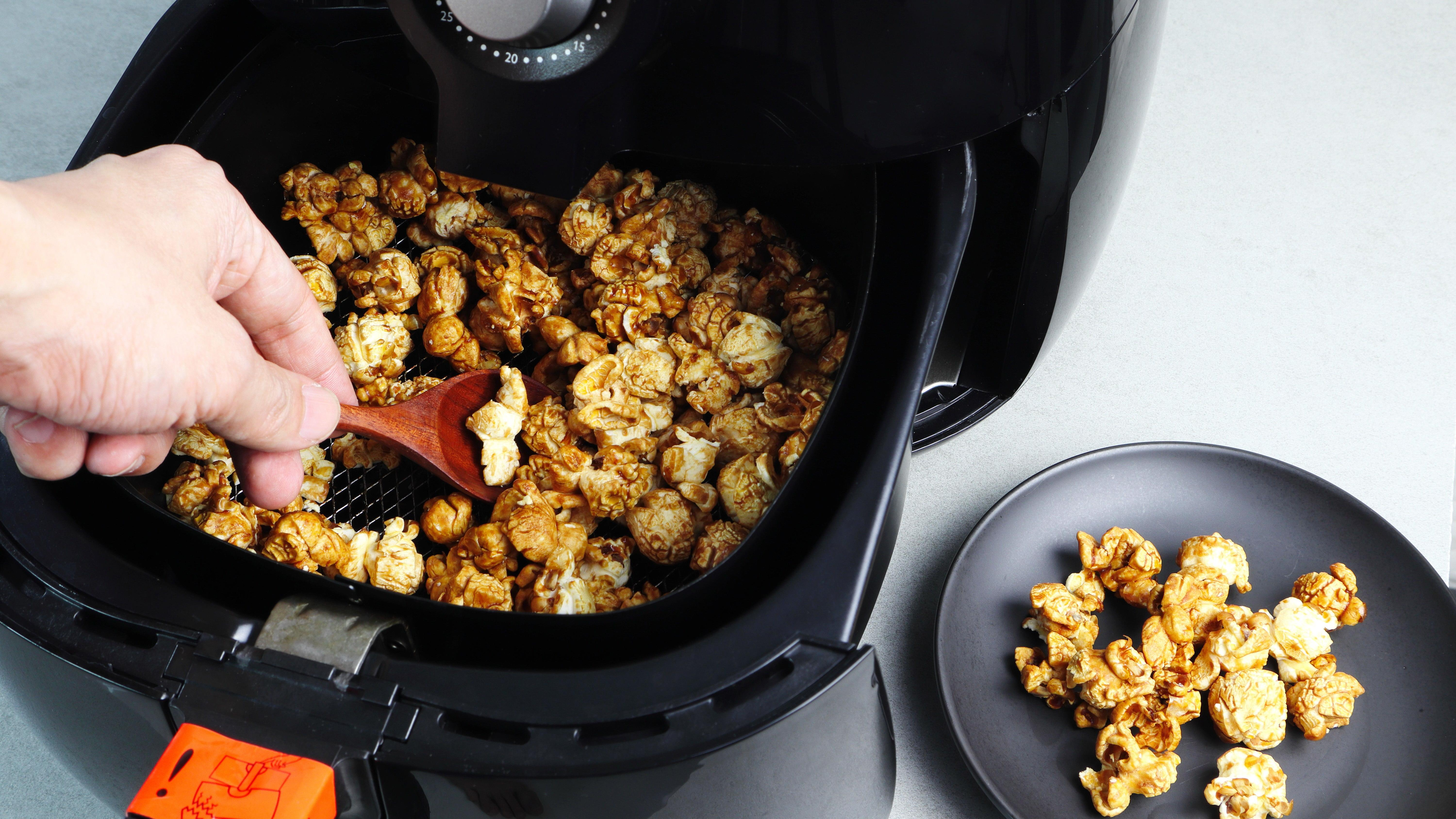 To put it plainly, an air fryer is not a microwave (despite the misleading image above). Popping popcorn in this high-temp cooker might sound right in concept, but trust us, it's not a good idea in practice. Not only will you end up with kernels in the crevices of your machine, but you'll end up disappointed with mostly unaltered kernels rather than actual popcorn.