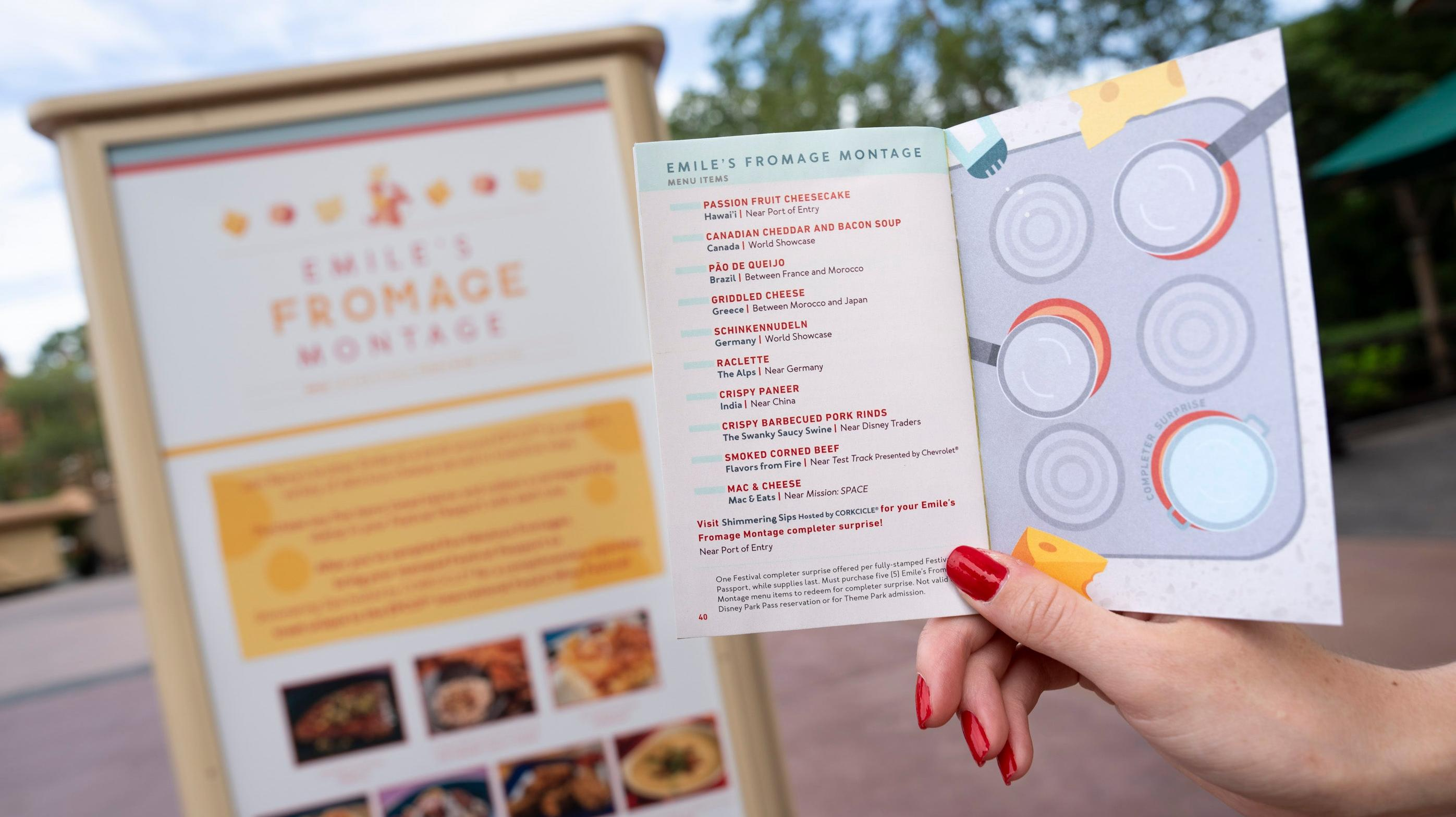 EPCOT hands out Festival Passports around the park, which have the rundown of booth locations and their menus. Do yourself a favor and read through it early in the day—that way you can identify the booths that you'd be most sorry to miss, and you can loosely plan your day around making it to those and spacing out rides and breaks in between.