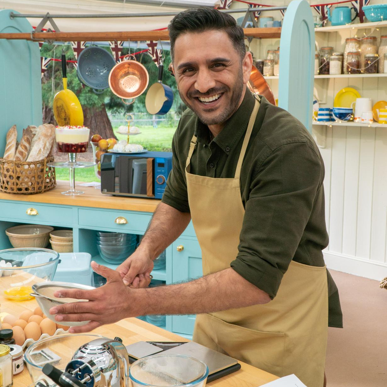 Chigs has already won my heart because I, too, am a geriatric millennial, and he's proof that there's nothing us olds can't accomplish if we put our mind to it. According to his official bio, Chigs' non-baking hobbies include bouldering, skydiving, and trekking (which is like hiking, but harder), and he plans to climb Mount Kilimanjaro. But perhaps most impressive of all, Chigs only learned how to bake while in quarantine using online videos and the general power of the internet, and look at him now, competing on the biggest baking stage in the entire world. My heart is fluttering, which means he'll more than likely be gone by Bread Week.