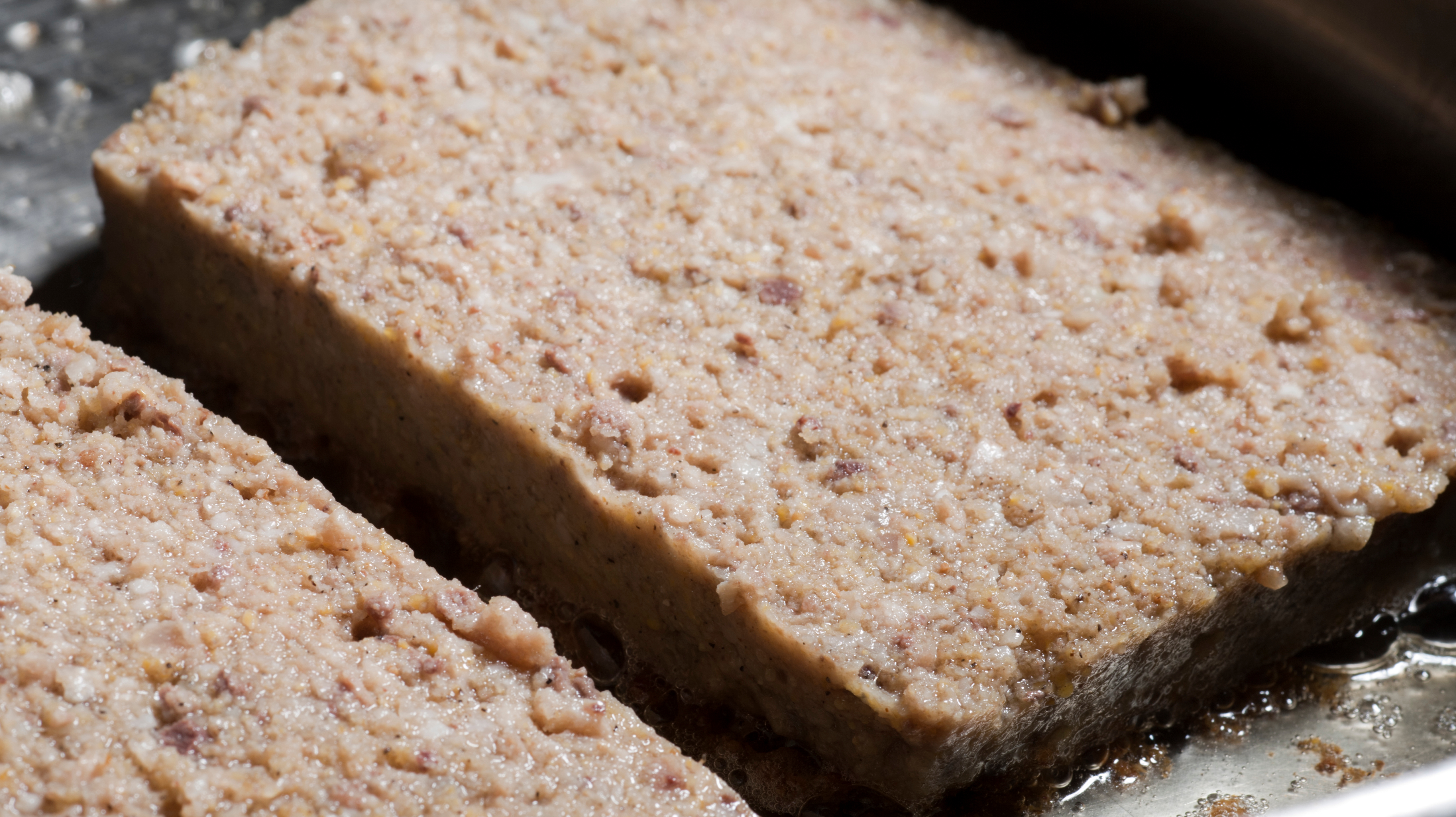It's peasant food from the Pennsylvania Dutch (and by "Dutch" they mean "Deutch," and by "Deutch" they mean "German"), representing the sort of old-timey ingenuity that inspired all sorts of culinary genius back when "whole-animal" was a necessity and not a selling point. It's similar to the Scottish haggis, the livermush of North Carolina, the even-more-localized goetta in Cincinnati, or any other regional manifestation of cheap meat scraps stretched and glued together through the addition of cheaper foodstuffs.