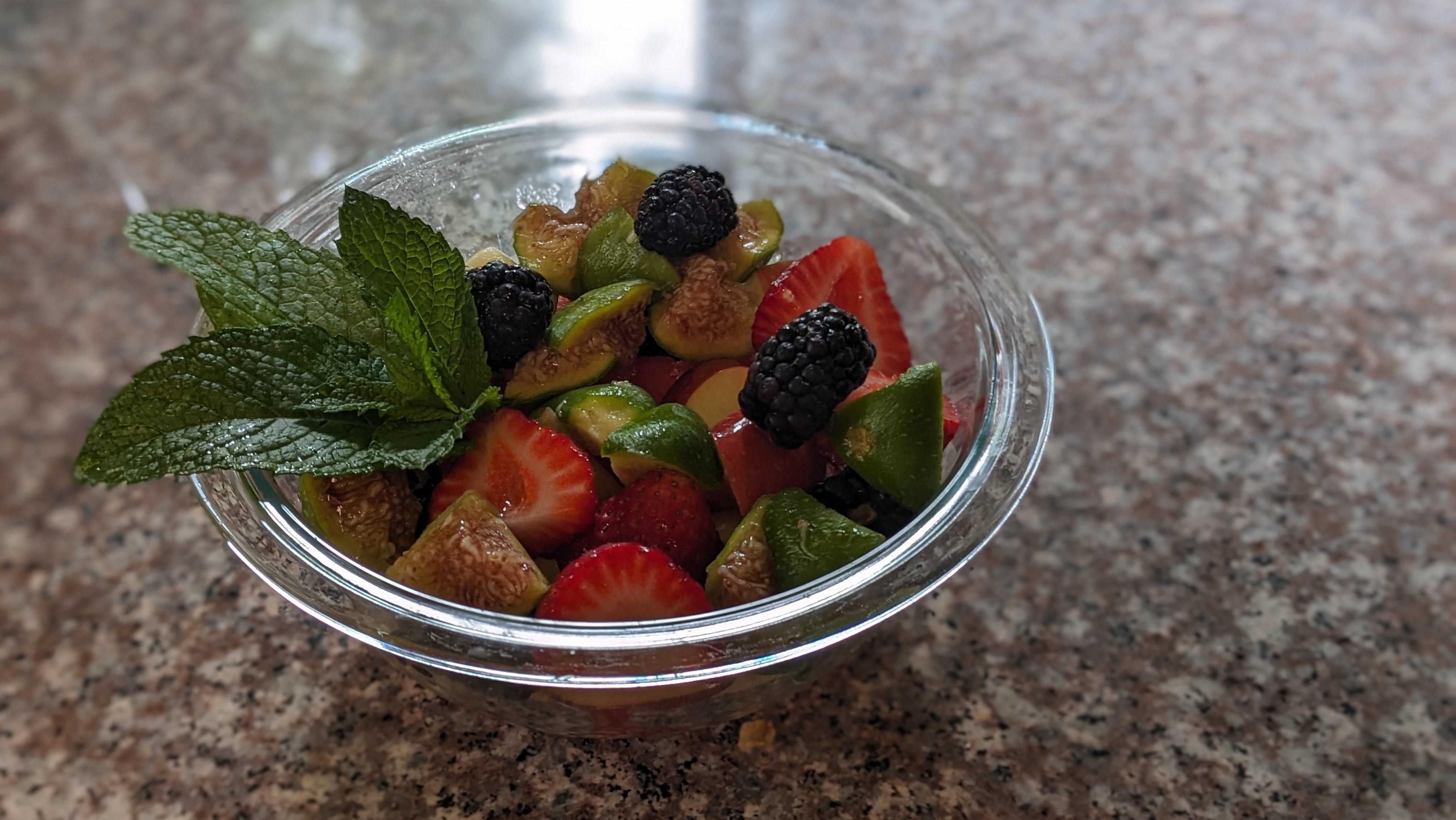 With the leftover lemonade, I made myself a fruit salad with figs from my tree, mint from my garden, some seasonal berries, and acceptable watermelon. It tasted delightful, held up well in the fridge, and generally surpassed the mandarin-orange-laden salads of my childhood. The strawberries in particular benefitted from the lemonade addition, and if you are down with a little excess sugar, you should try it for yourself.