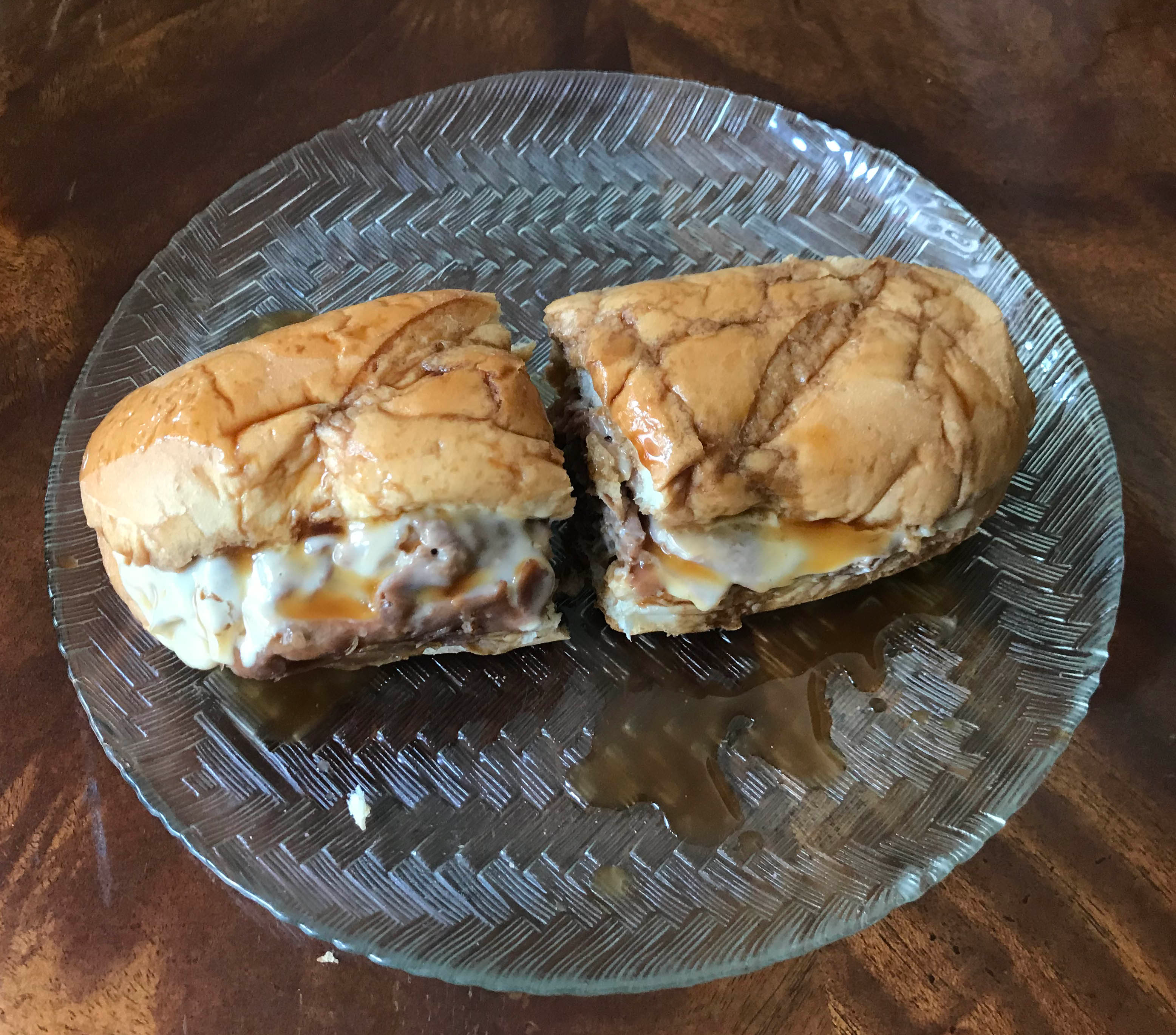 Now we're off to the races. By ladling on enough jus to saturate the bread and contents alike, the sandwich is now struggling to retain structural integrity. Picking up and/or placing it will lead to a light but unavoidable squirt of jus, and it's around this point that you'll notice a growing inability to distinguish the beef flavor itself. The thick, chewy texture is still there, but the tastes of both cheese and beef are barely evident above the liquid's salt. The sensation isn't entirely dissimilar from knocking back a greasy slider; a quick burst of the sandwich's cheese and beef is followed and overwhelmed by a sustained salt wave.