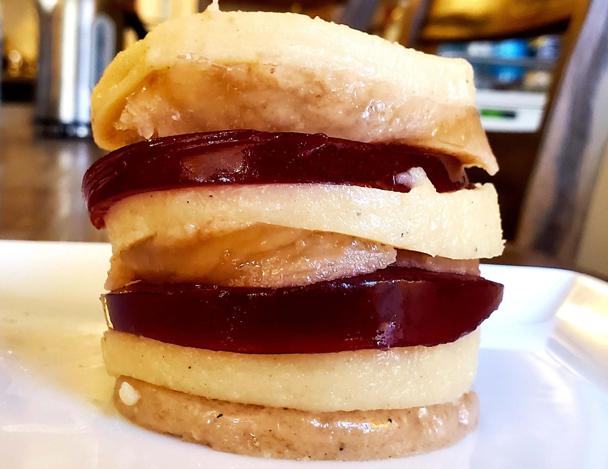 The beef stock with gelatin is another story. As you can see, the mixture separated pretty thoroughly in the cooling process, as the buttery roux ended up rippled amongst clear, beefy Jell-O. (To combat this, I'd probably try stirring it every few minutes in the early stages to keep the whole thing combined as the gelatin sets.) But I will say, the taste test won out: it tasted like beef gravy! Sure, the resulting cylinder of brown sauce isn't the most appetizing thing I've ever seen, but that's an aesthetic concern we can easily overlook for the sake of innovation.