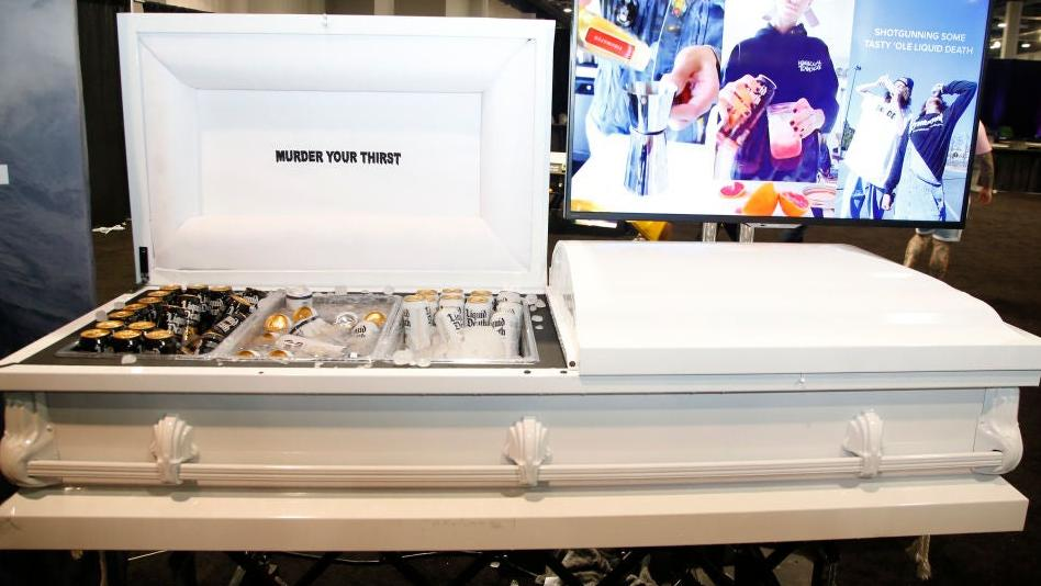 The Liquid Death brand goes hard on its whole "Murder Your Thirst" shtick (is simply "hydrating" for wimps?), and so it created a Thirst Hearse to distribute samples and promote its product. You can request that the branded funereal vehicle appear at your event (so long as it's in Los Angeles), and we'll assume the casket in the back is actually a cooler for the canned waters. We only wonder if the interior is lined with these $58 Martha Stewart x Liquid Death Dismembered Moments Candles. Nothing is certain in life except death and Martha Stewart brand collabs.
