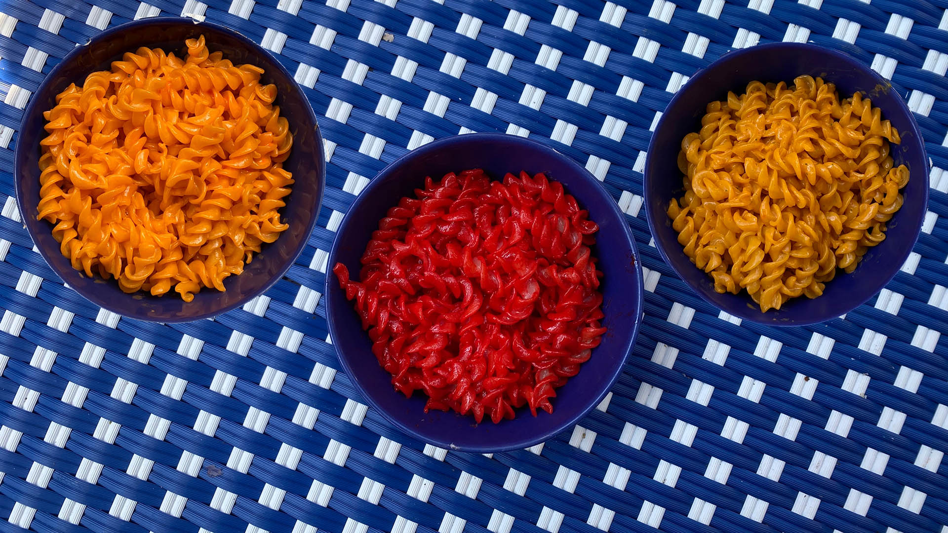 The mac and cheese, however, was very good, for the simple reason that it tasted exactly like Cheetos, except not crunchy (or stale), which is the pure platonic ideal of Cheetos Mac 'n Cheese. By which I mean, the cheese flavor is very intense and very artificial. The Flamin' Hot was indeed very hot, as was the Cheesy Jalapeño, but key difference was that the jalapeño tasted like it was inspired by something actually found in nature. Flamin' Hot, however, maintained its signature bright red color, so it was the most aesthetically pleasing.