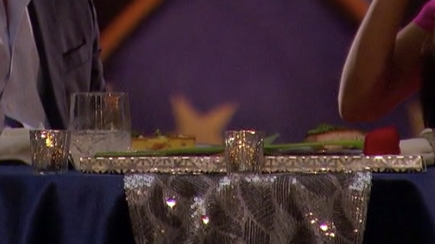 As is customary, Peter gets "dinner" with his two one-on-one dates. With Brunette Victoria, he gets yellow substance: