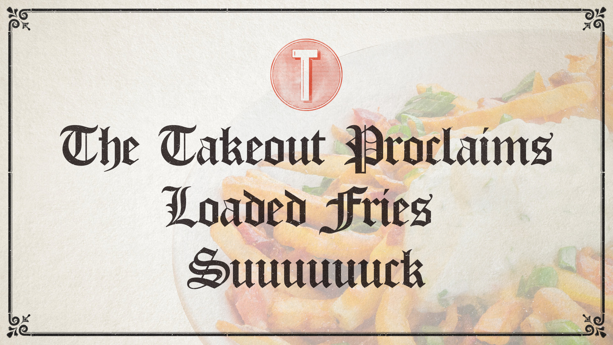 Hear ye, hear ye. Gather 'round, as The Takeout shall issue a public proclamation. On this day, in the year 2018 Anno Domini, our fair food publication has declared the official stance on "loaded French fries": they suck.